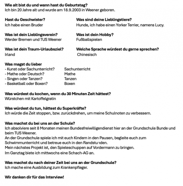 Interview der I-Pad-AG mit unserem Bufdi Jannes Köller Interview der I-Pad-AG mit unserem Bufdi Jannes Köller 22. April 2024 gs-bunde